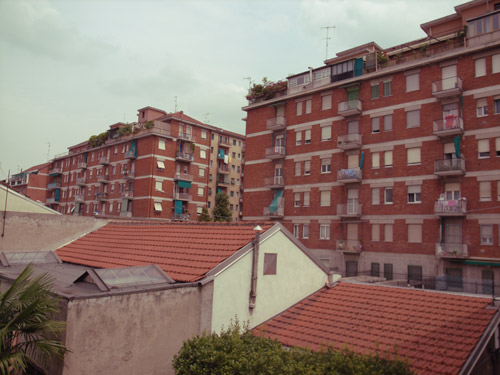バルコニーから見た風景。赤、オレンジ、ときどき緑。
