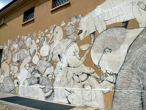 ナイス壁アート。ペンキの白と壁のベージュがいい感じでした。