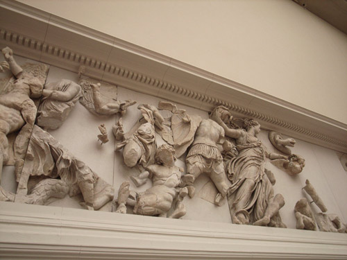 ペルガモン神殿壁面の再現。神々の戦い。